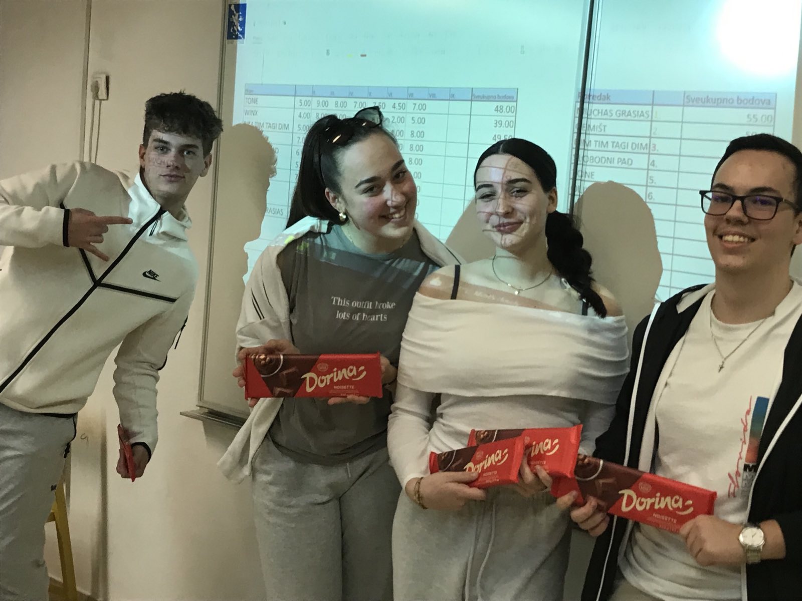 Nakon izjednačene borbe pobjedila je ekipa MUCHAS GRASIAS (Karla Saganić, Luka Baričević, Dario Marijanović i Dunja Kleva – svi učenici 3. razreda opće gimnazije).