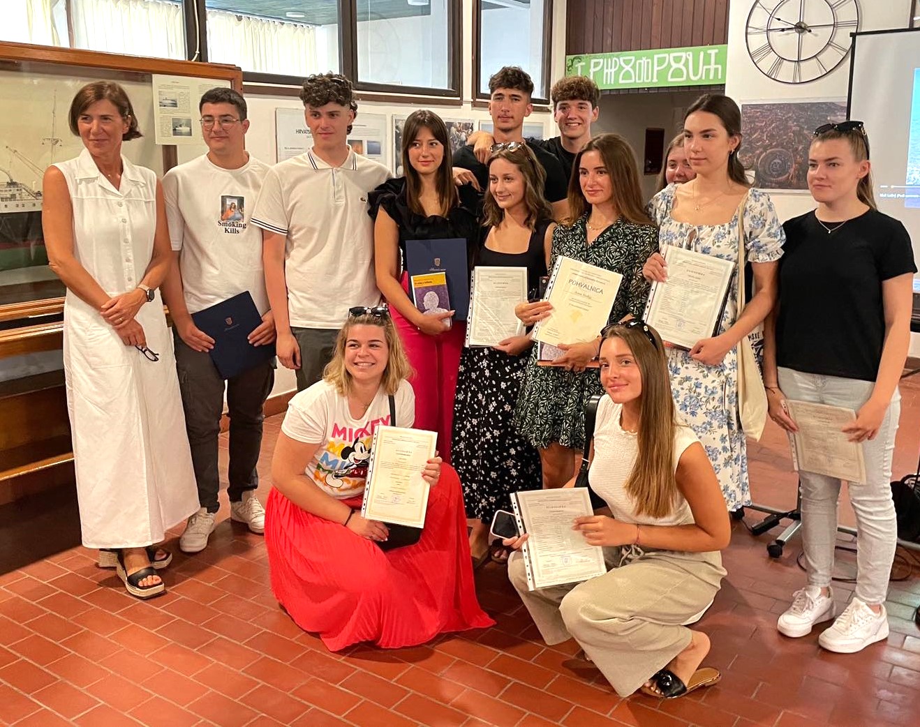 Svjedodžbe o završenom 4. razredu i svjedodžbe o završnom radu za zanimanja hotelijersko – turistički tehničar, pomorski nautičar i tehničar za brodostrojarstvo maturantima su uručile njihove razrednice profesorice Patricija Tomich i Daniela Mužić, a svjedodžbe završenog četvrtog razreda uručila je gimnazijalcima njihova razrednica profesorica Sunčana Dundov.