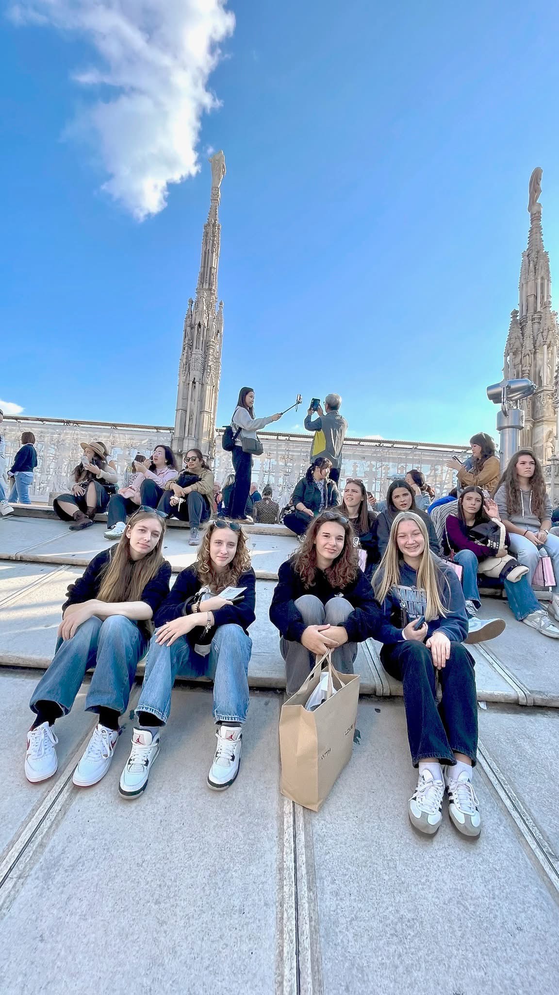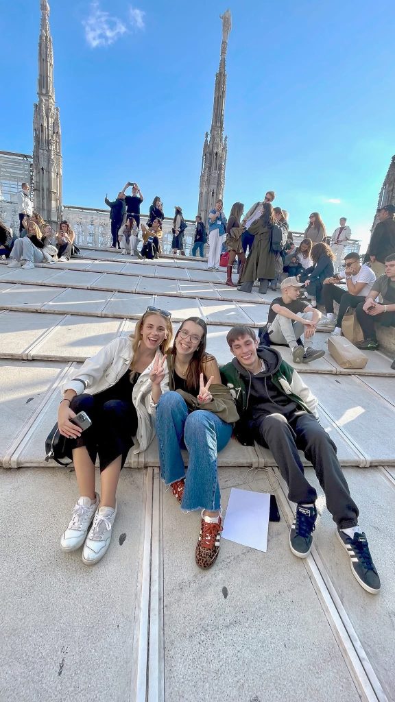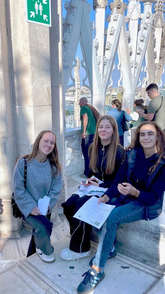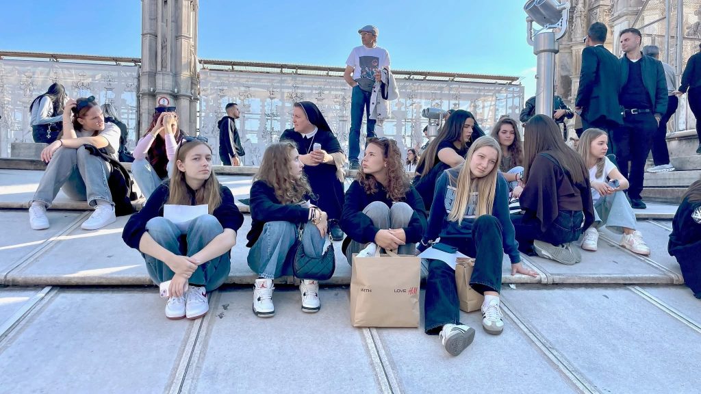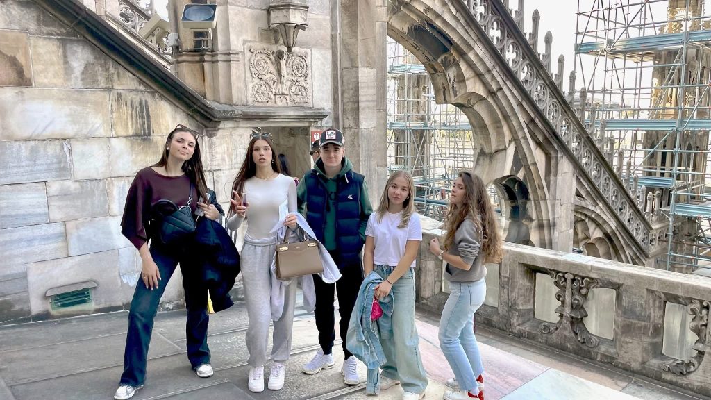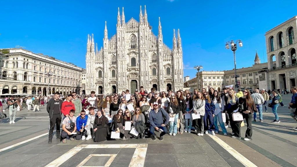 U središtu Milana, učenici su posjetili veličanstvenu katedralu Duomo – srce grada i jedno od najimpozantnijih djela gotike u Europi. Uspon na terasu katedrale pružio je pogled koji oduzima dah, ali i trenutak duboke tišine i divljenja. Na tom mjestu, visoko nad gradom, u tišini i suncu koje je obasjavalo kipove svetaca, svatko je mogao osjetiti trenutak unutarnjeg mira.