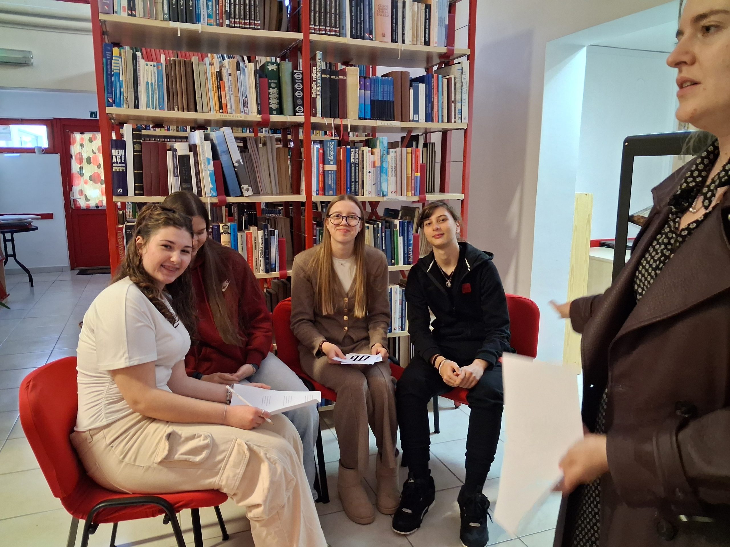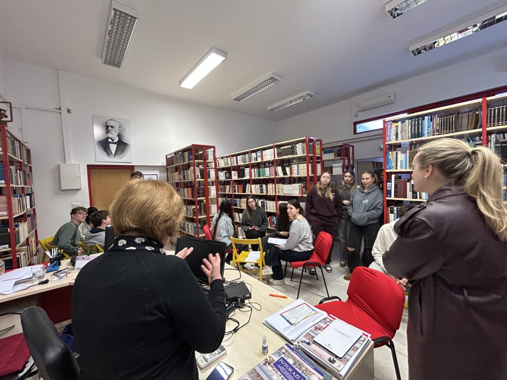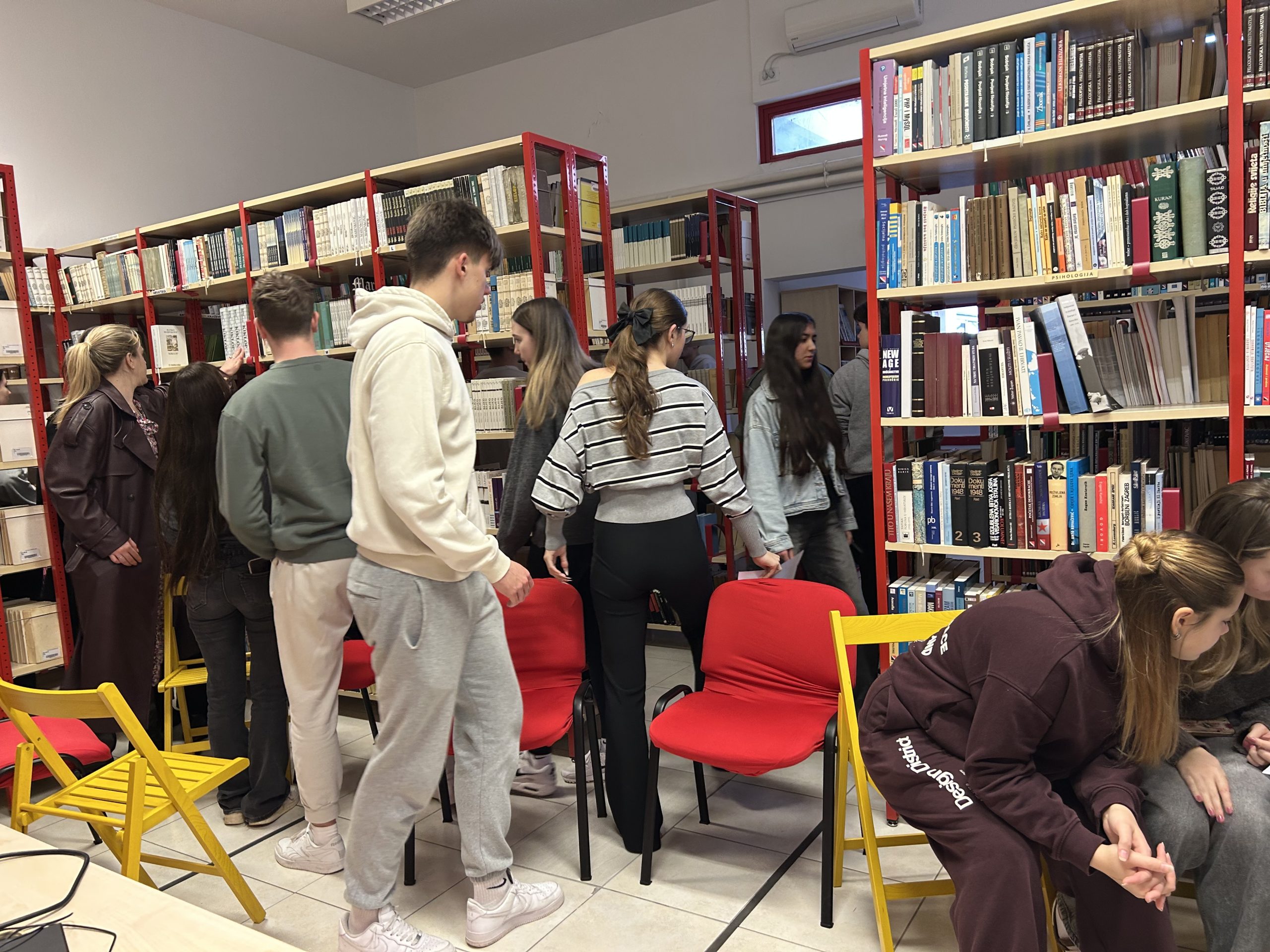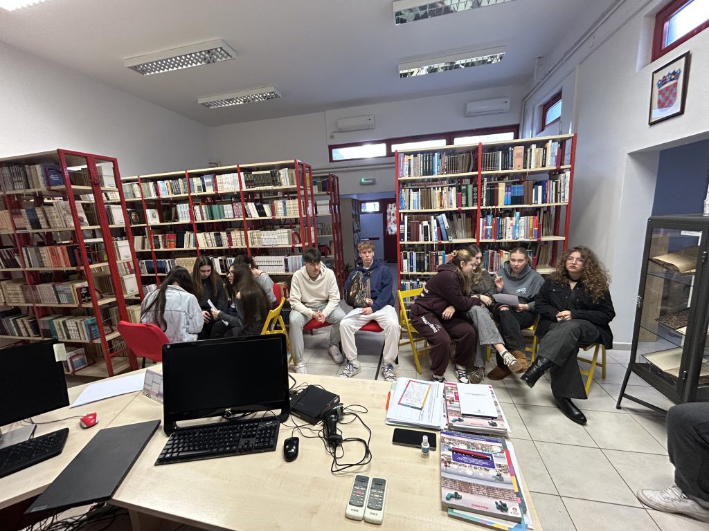 Rješavajući zagonetke vezane za književna djela učenici su na policama tražili glagoljska slova. Na poleđini svakog slova je pisalo njegovo značenje. Pronađena slova s riječima su slagali u rečenice i na taj način otkrili poruku koja se iza njih skriva. Radionica će se održati i u 2.h razredu na satu Povijesti.