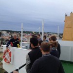 Izlazeći iz brodske strojarnice učenici su se uputili prema palubi broda gdje su bili upoznati s brodskim skladištima „štivama“ i poklopcima brodskih skladišta „bokaportama“, brodskim dizalicama koje služe za manipulaciju teretom, opremom za privez broda i sidrenje.