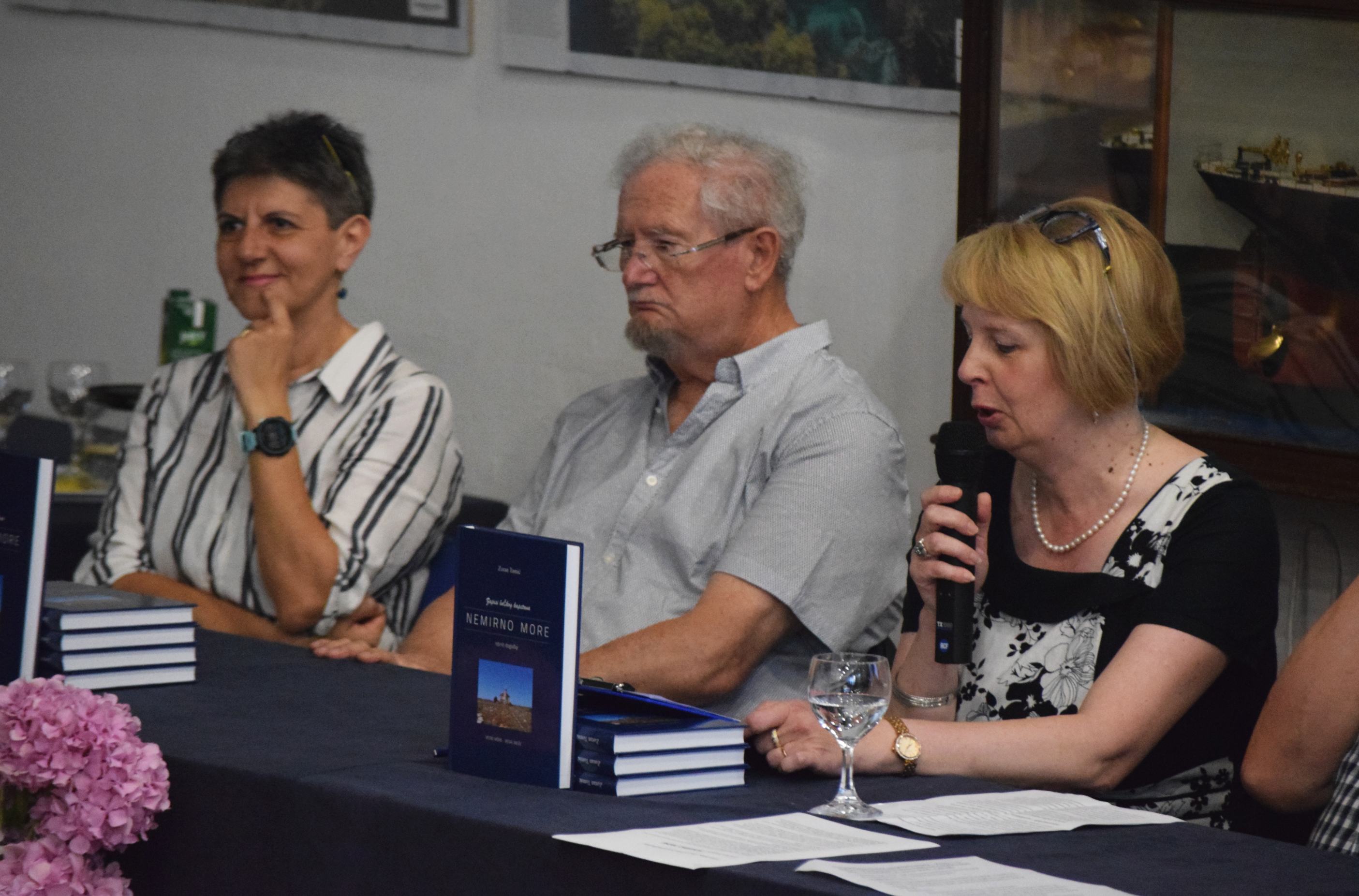 Nakon pozdrava pokrovitelja – ravnateljice Jelene Bralić i kap. Borisa Rukonića, nazočne je pozdravila urednica koja je kratko istaknula kako su priče iz knjige opisi stvarnih događaja kojima je svjedočio autor ili njegovi suradnici. One nas obogaćuju i čuvaju, poučavajući što sve môre mȍre i zna. Urednica je, potom, pročitala tekst gospodina Stanka Škrpca, novinara u mirovini, publicista, dugogodišnjeg direktora i glavnog urednika Novog lista koji već duže vrijeme s autorom njeguje ideju o tiskanju monografije o tragediji kod Trstenika.